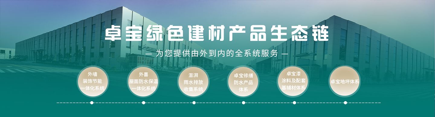 湖北卓寶建筑節(jié)能科技有限公司是卓寶集團旗下全資子公司,公司將綠色建筑理念和卓寶創(chuàng)新基因深度融合,打造了涵蓋外墻裝飾節(jié)能一體化、防水保溫一體化、海綿城市雨水收集排放、內外墻涂料&基輔材、防水修繕、建筑地坪“六位一體”綠色產品生態(tài)鏈,提供自屋面到地面,自外墻到內墻,及防火防腐等一系列功能型綠色建材,適用于外圍護、內裝飾的全系統(tǒng)服務。通過自身研發(fā)優(yōu)勢,累計申請百余項國家專利,并參與多項國家標準、地方標準制定,保障了每一塊出廠產品的質量,為客戶提供質量保障。